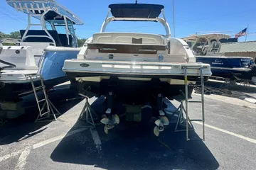 Powered by Twin Volvo Penta V8-300CE (Catalyst) DP 300HP engines with Joystick, this boat performs like a true thoroughbred while remaining incredibly easy to maneuver around the dock.