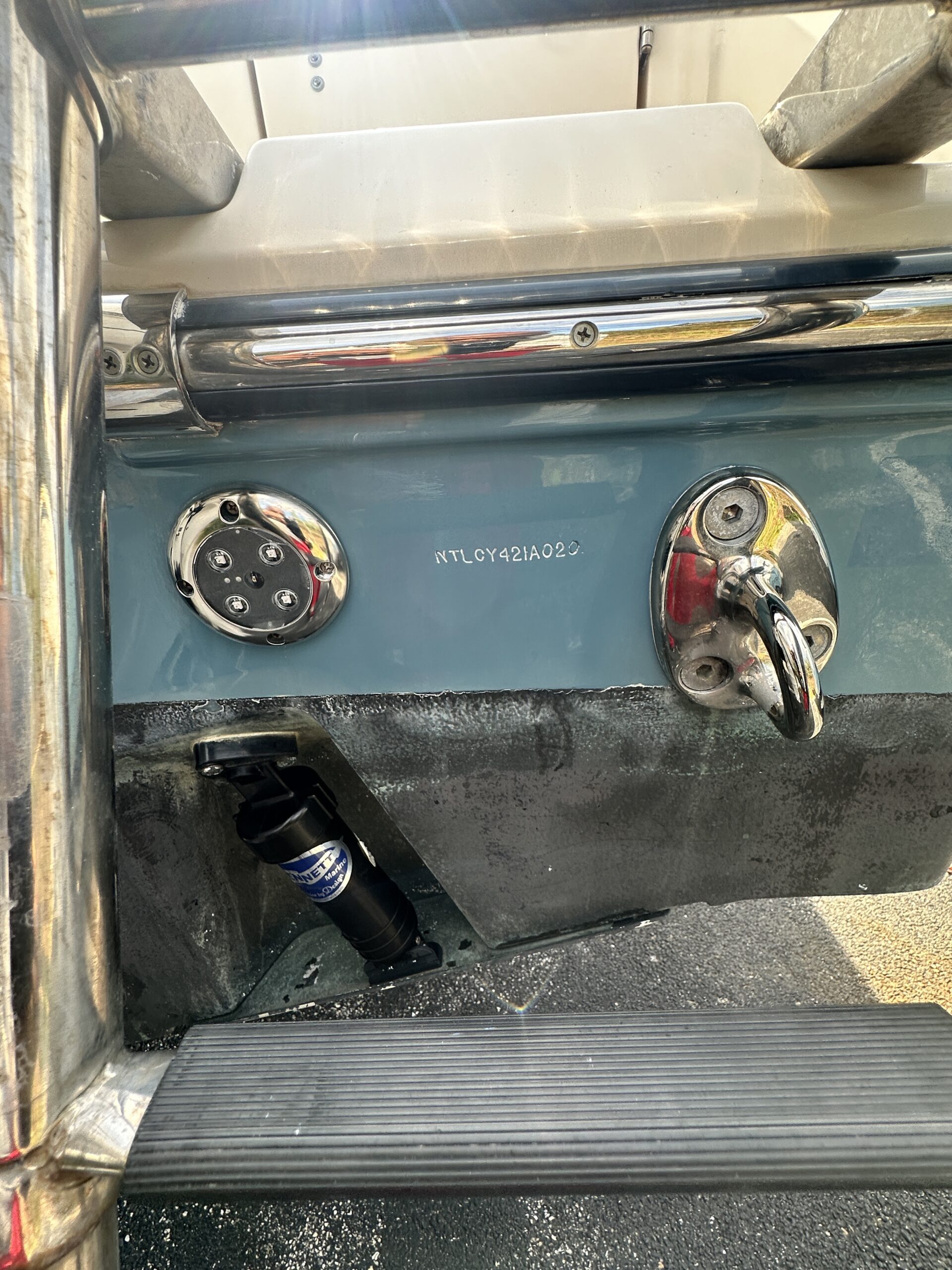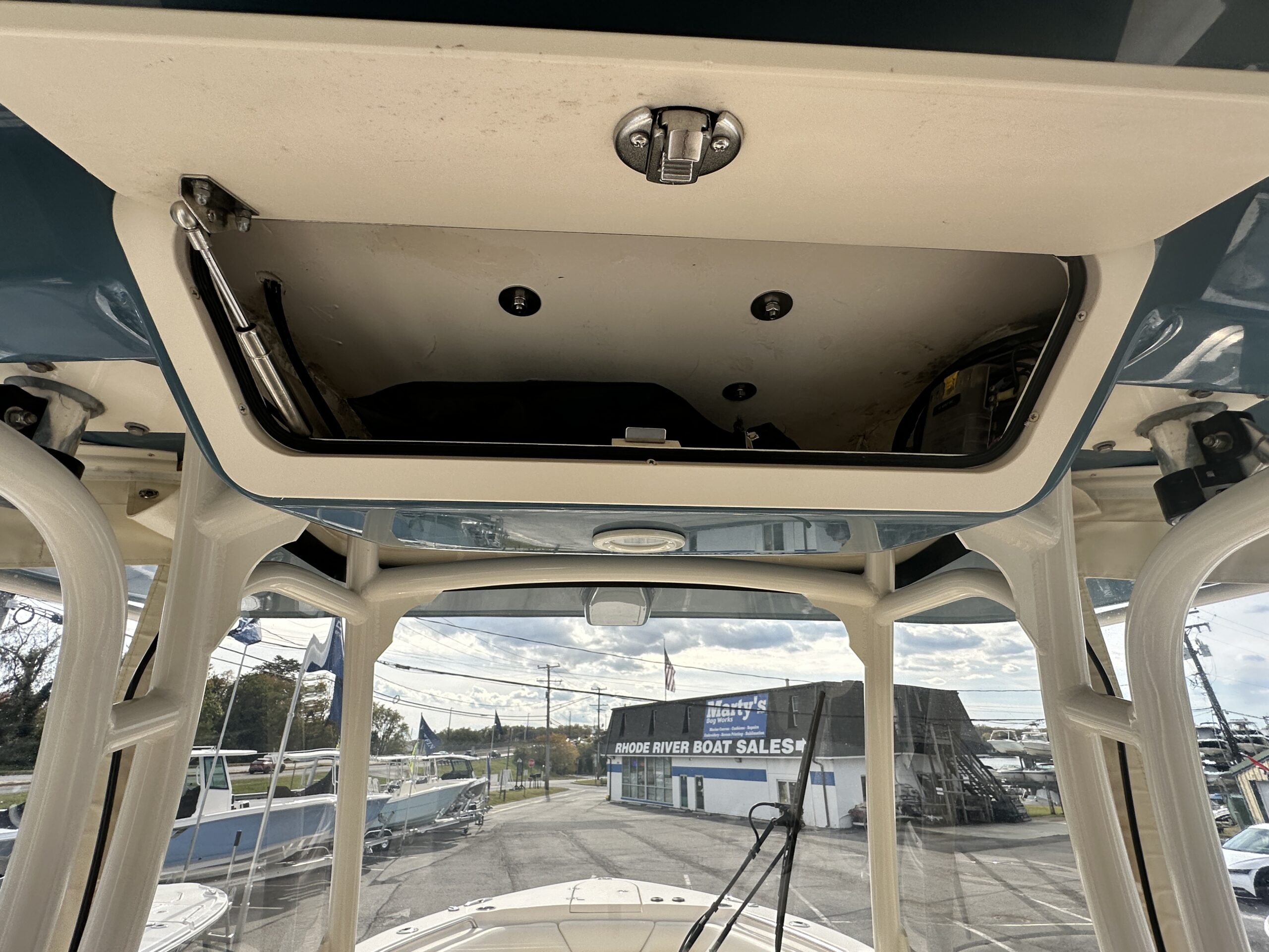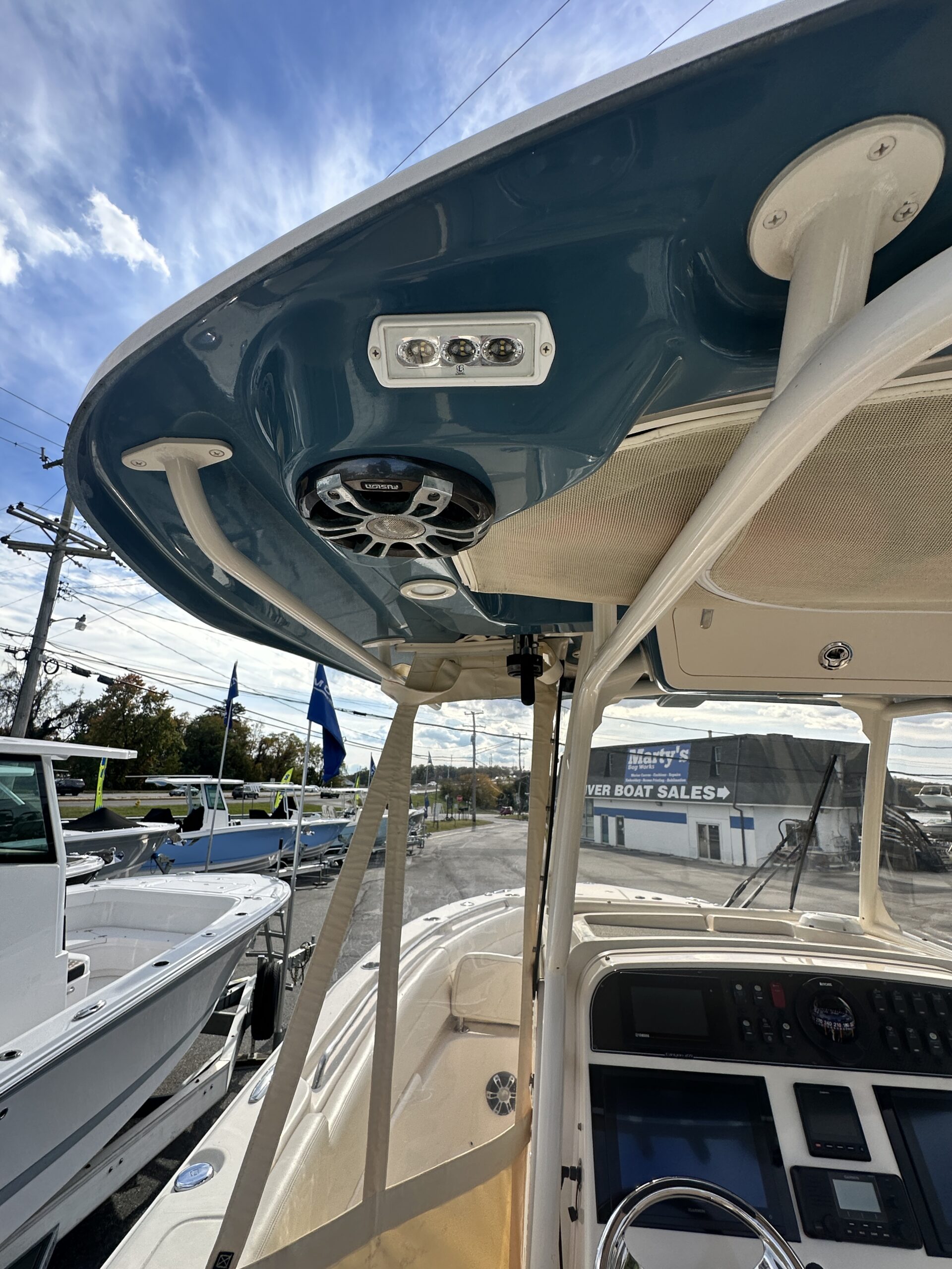 - Seaport Blue hull with powder-coated T-top