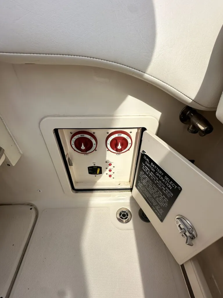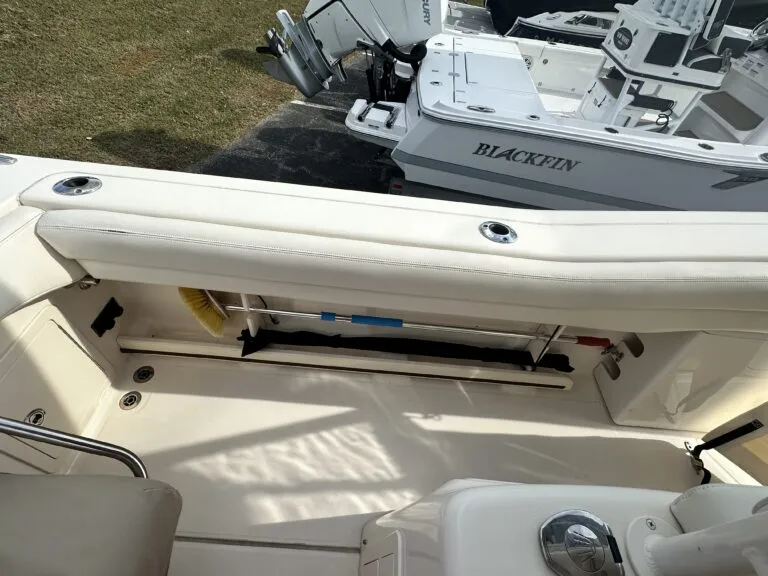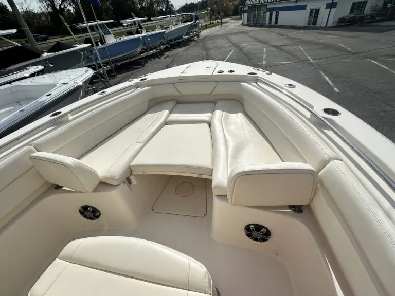 This boat is one-owner, lightly used, and meticulously maintained with only 572 hours. It is currently available at Rhode River Boat Sales in Edgewater, MD.