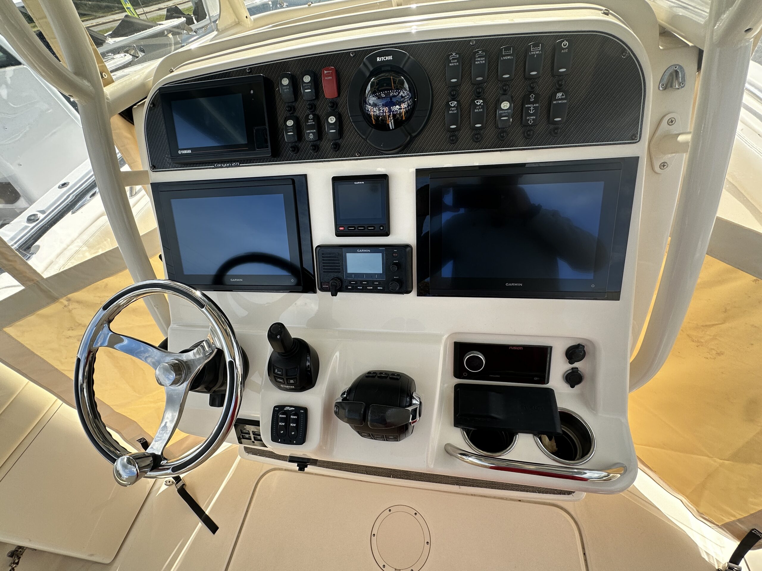 Whether you are trolling offshore or spending a day at the sandbar, this Canyon 271 is versatile, capable, and stylish.