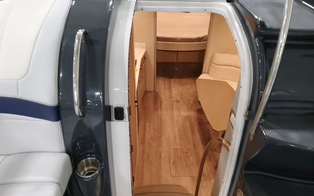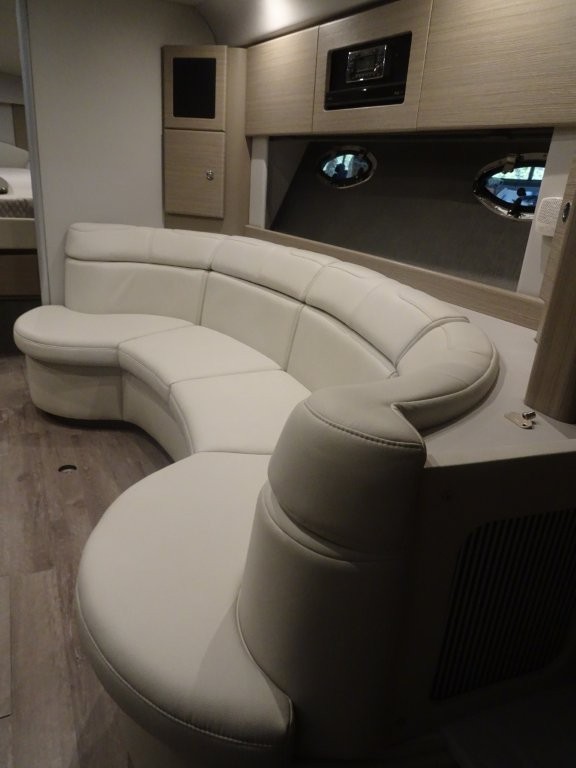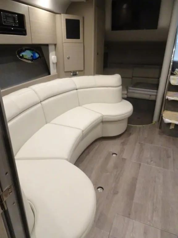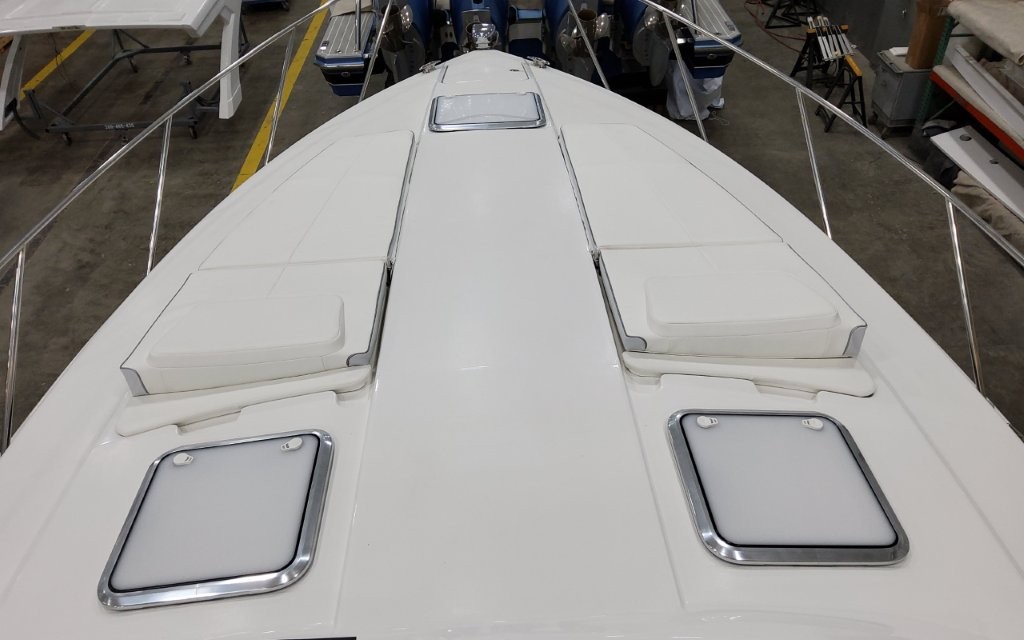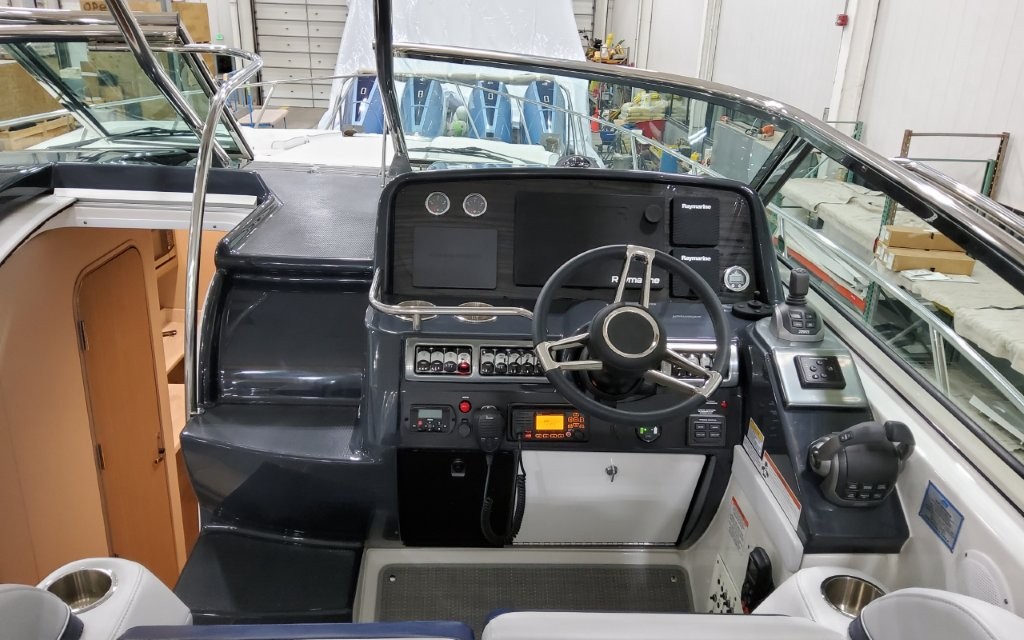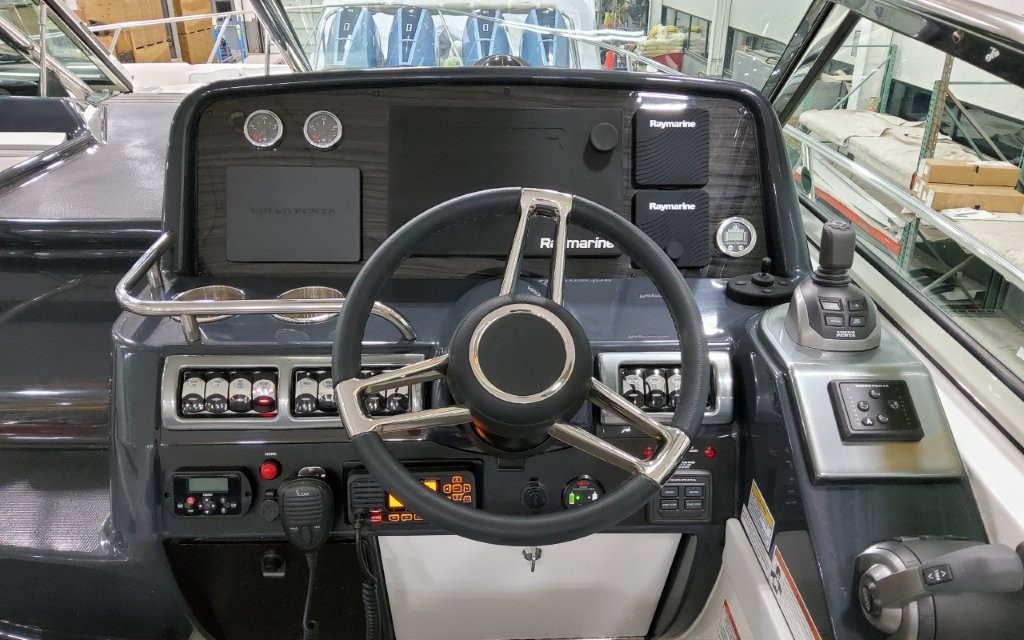 Powered by twin Volvo Penta IPS 450 diesel engines (340 HP each) with joystick docking, this boat delivers smooth handling, efficiency, and confident maneuverability.