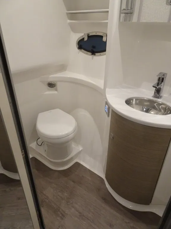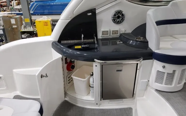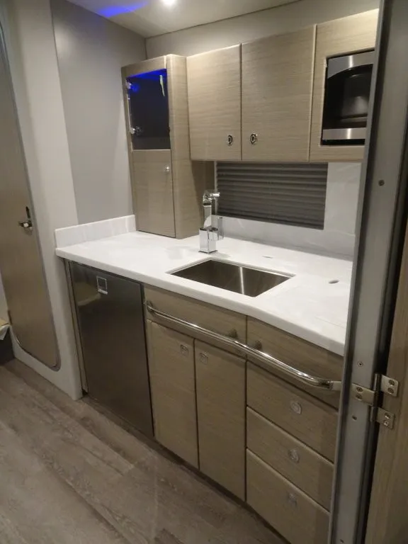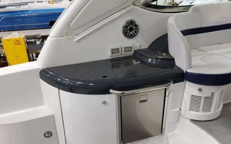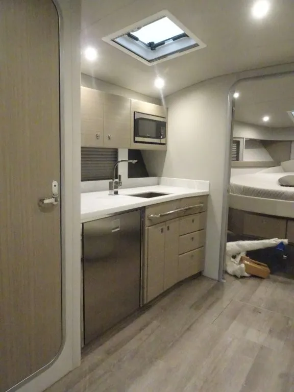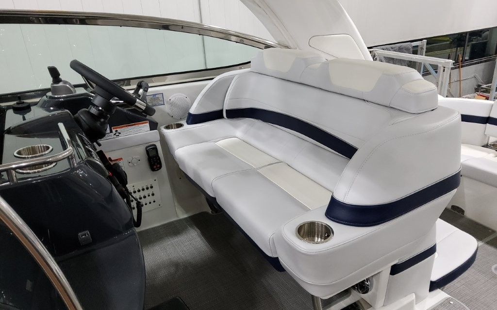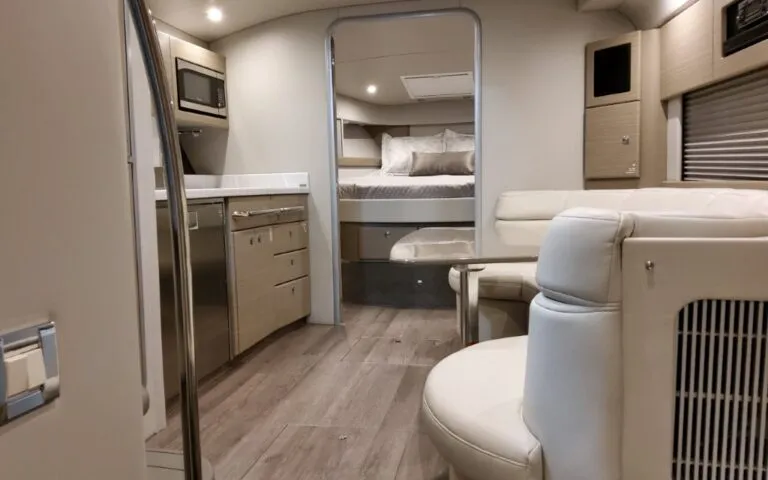 Powered by twin Volvo Penta IPS 450 diesel engines (340 HP each) with joystick docking, this boat delivers smooth handling, efficiency, and confident maneuverability.