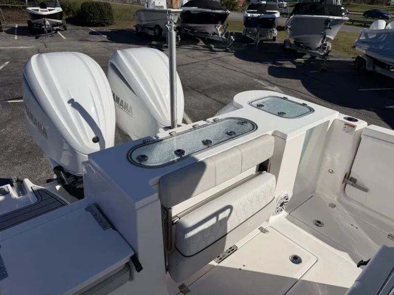 Experience premium offshore performance and luxury with this Sea Fox 288 Commander, powered by twin Yamaha F300XCA engines with stunning white painted cowls. This 28-foot center console is designed for serious anglers and family cruisers alike—offering performance, comfort, and versatility in one impressive package.