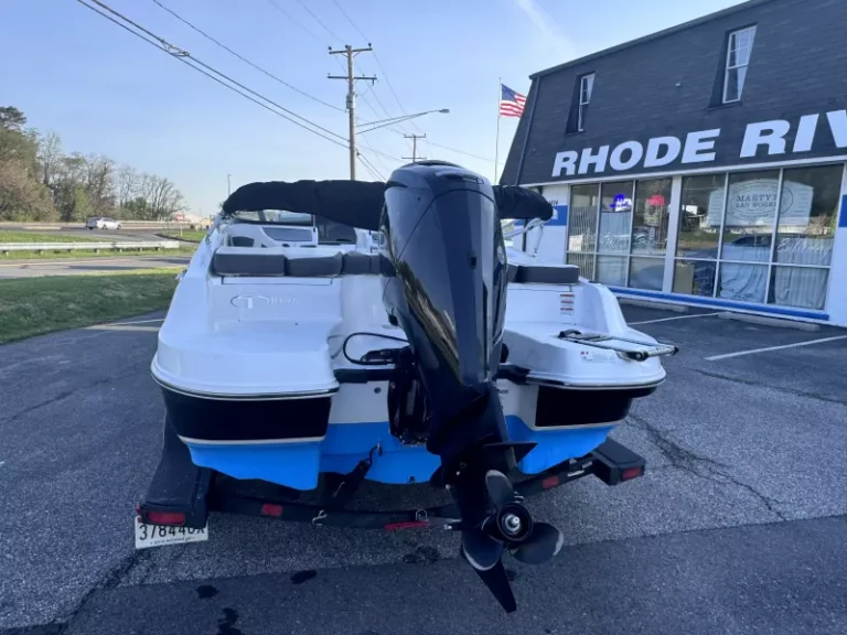 - Aft full-width padded sundeck w/removable cushion, access to step-thru transom & storage below, including ski rope holder