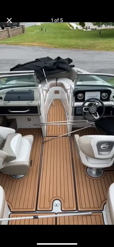 You are viewing a 2023 Crownline 240 SS that is loaded with all of the popular options featuring white & blue hull sides that is in BRAND NEW CONDITION. Powered by a single Yamaha Mercrusier 6.2L Bravo 3 Outdrive DTS MPI engine with less than 100 hours. Features on board include a large oversized bimini top, free heritage paint trailer, onyx bow & stern cover, tan sea deck on swim platform, swim ladder, snap in tan sea deck that is removable, kicker stereo system with blue tooth, stern stereo speakers, Garmin GPS / Fish Finder / Depth Sounder / Engine Gauges, removable bow table and several other great features! The boat has been boatel stored inside and never kept in the water over night. The family has a new baby on the way. We are Rhode River Boat Sales of Maryland and have been in business for 41 years. Please contact us by email or call to setup an appointment to see this stunning Crownline 240 SS!