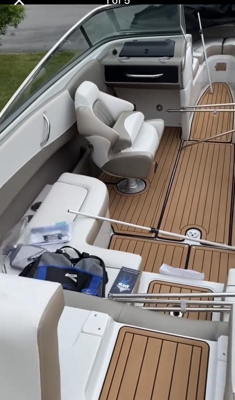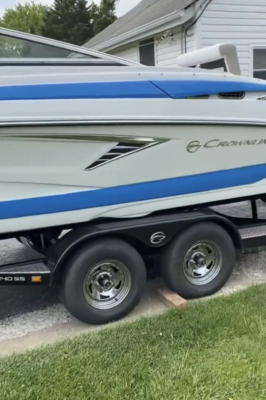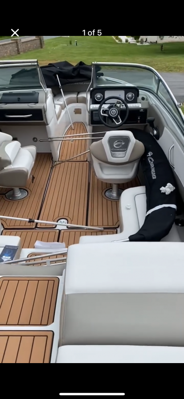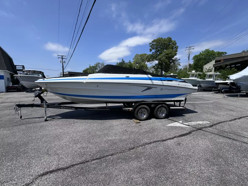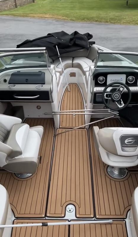 You are viewing a 2023 Crownline 240 SS that is loaded with all of the popular options featuring white & blue hull sides that is in BRAND NEW CONDITION. Powered by a single Yamaha Mercrusier 6.2L Bravo 3 Outdrive DTS MPI engine with less than 100 hours. Features on board include a large oversized bimini top, free heritage paint trailer, onyx bow & stern cover, tan sea deck on swim platform, swim ladder, snap in tan sea deck that is removable, kicker stereo system with blue tooth, stern stereo speakers, Garmin GPS / Fish Finder / Depth Sounder / Engine Gauges, removable bow table and several other great features! The boat has been boatel stored inside and never kept in the water over night. The family has a new baby on the way. We are Rhode River Boat Sales of Maryland and have been in business for 41 years. Please contact us by email or call to setup an appointment to see this stunning Crownline 240 SS!