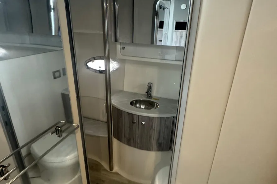 Powered by twin Volvo Penta IPS 500D 380HP engines with Joystick Docking and Dynamic Positioning, she’s a dream to operate. With just 50 hours on the engines, she’s barely broken in and ready for your next adventure.