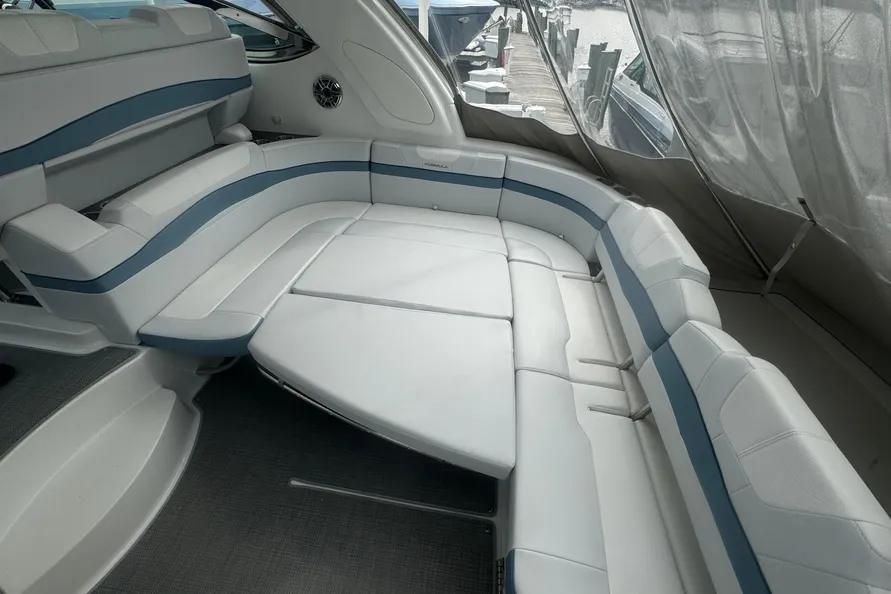 Step aboard this 2023 Formula 40 Performance Cruiser, now offered at a newly reduced price and loaded with top-tier options. Finished in a custom Formula Flex “Faded Blue Metallic to Steel” Imron graphic, this performance cruiser blends sleek aesthetics with cutting-edge engineering and premium amenities.