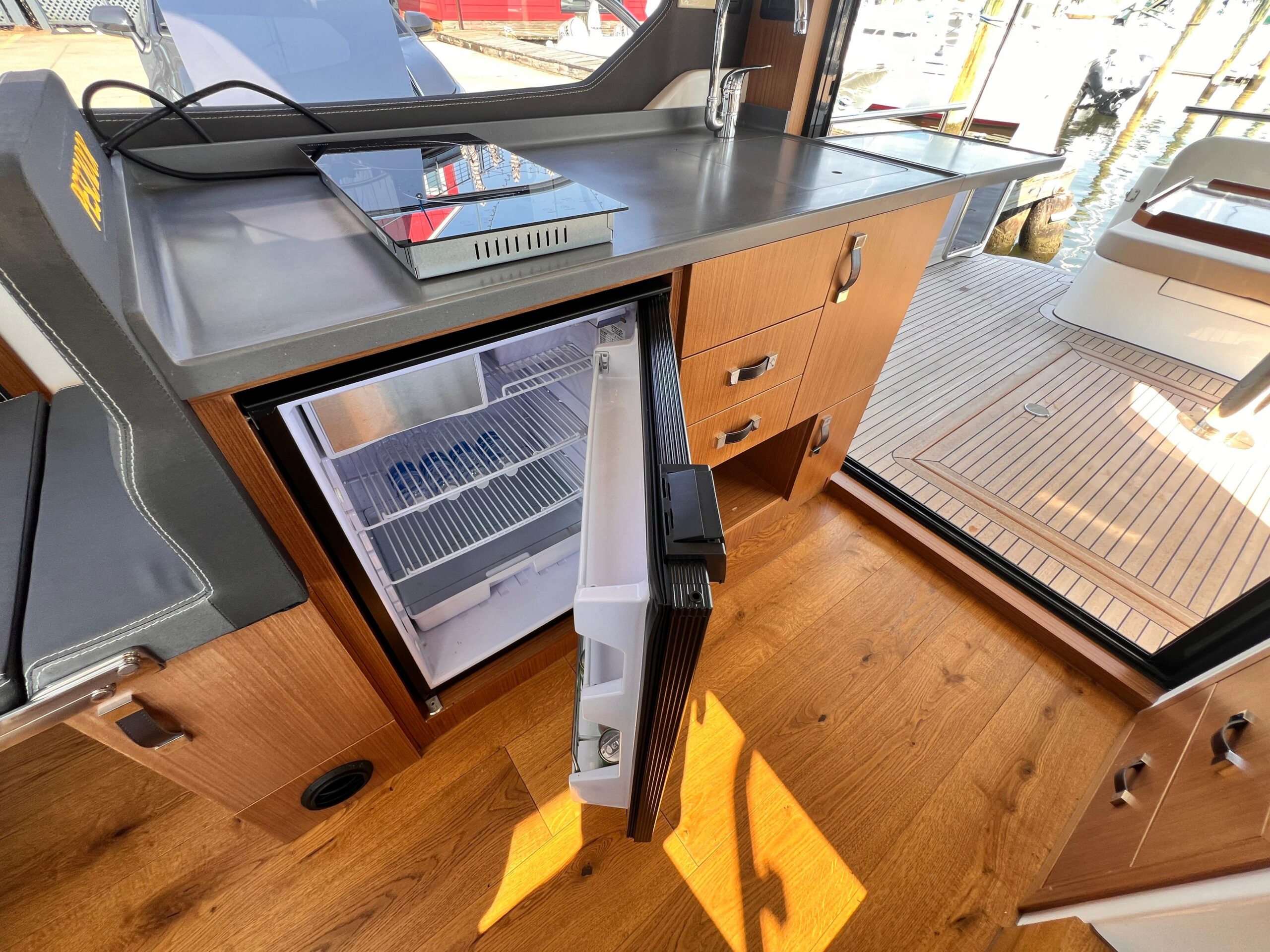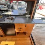 Galley: Two-burner hob, refrigerator, sink, generous storage