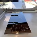 - Semi-displacement fiberglass hull (PVC sandwich core)