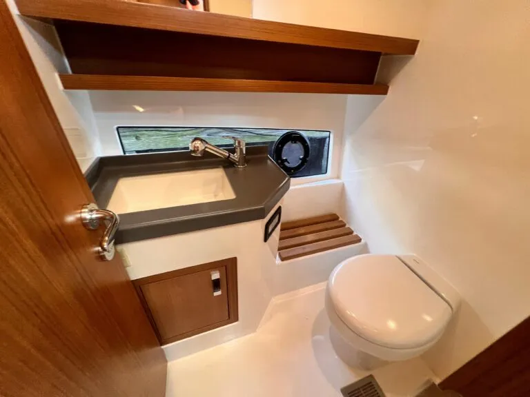 Designed by Yigit Akbarlas and built under the Pescador line, this 35 offers fuel efficiency, comfort, and style in a manageable size.