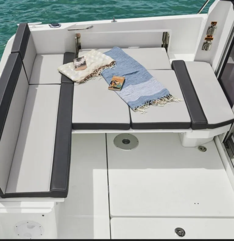 The U-shaped cockpit is thoughtfully designed for comfort and adaptability. It accommodates two coolers under the benches and provides flexible seating arrangements for socializing or relaxing. This layout makes it ideal for day cruising, entertaining, or enjoying time on the water with family and friends.