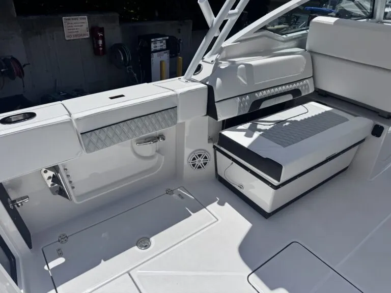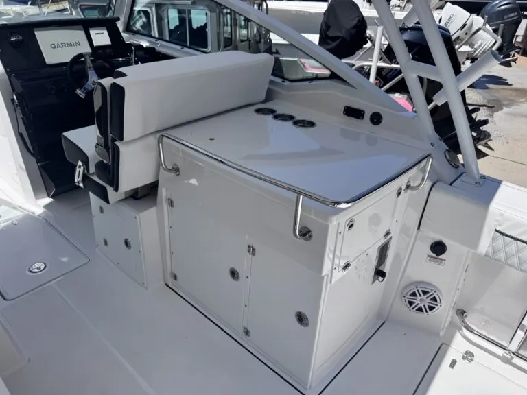 The Blackfin 272DC is a verified battlewagon. It handles rough seas with confidence and keeps your crew safe, dry, and comfortable. Additionally, features like the flip-down transom seating, tall freeboard, and intuitive command center enhance every trip. Whether you’re cruising to a local cove or running offshore, this boat is ready for anything.