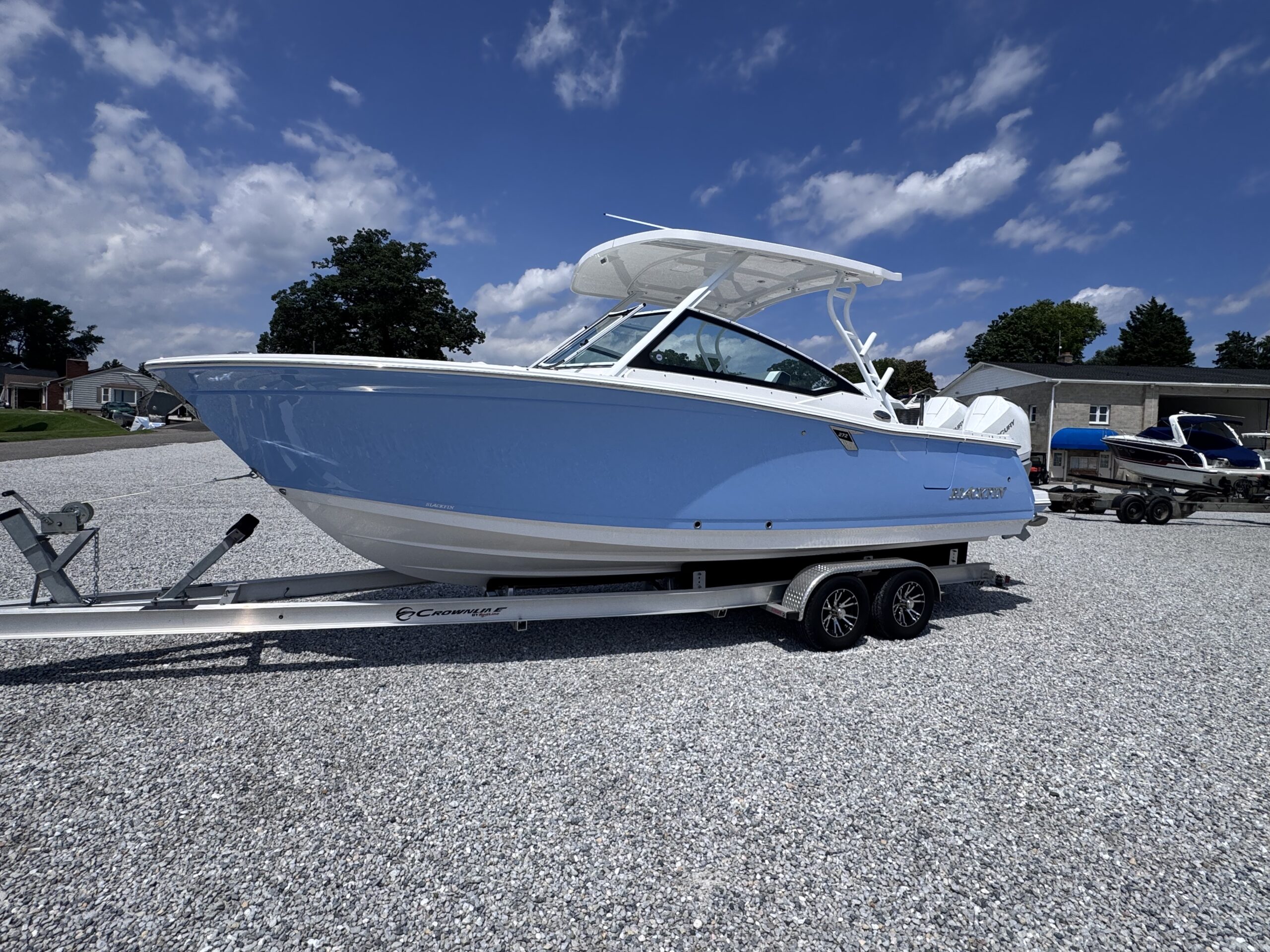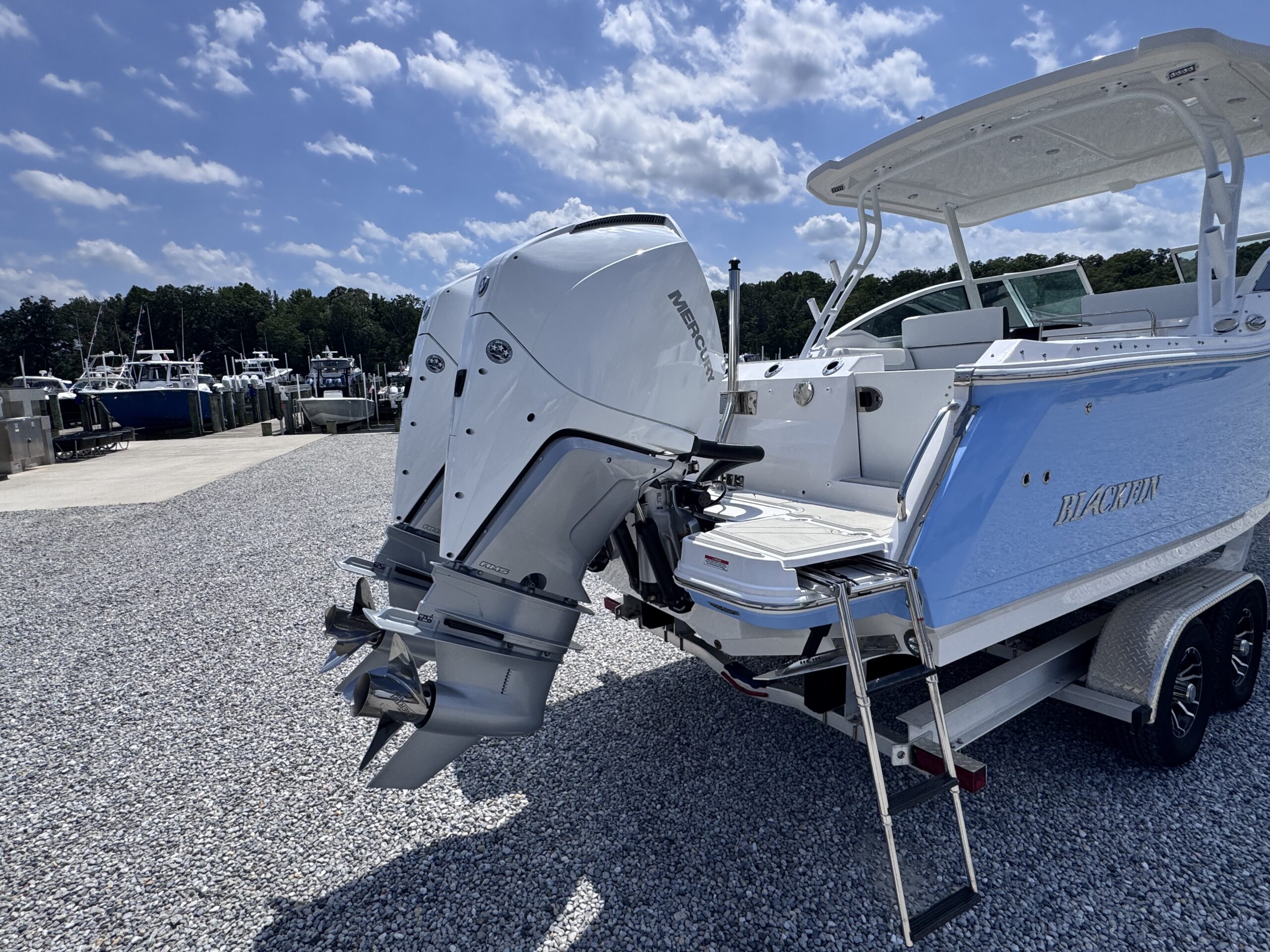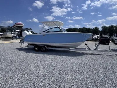 This 2026 Blackfin 272DC is a performance-ready dual console packed with the most sought-after features. It sports a striking Carolina Blue hull and is powered by twin white Mercury 300 Verado 4.6L V8 engines. The versatile deck layout makes it ideal for both serious offshore runs and relaxed coastal cruising.