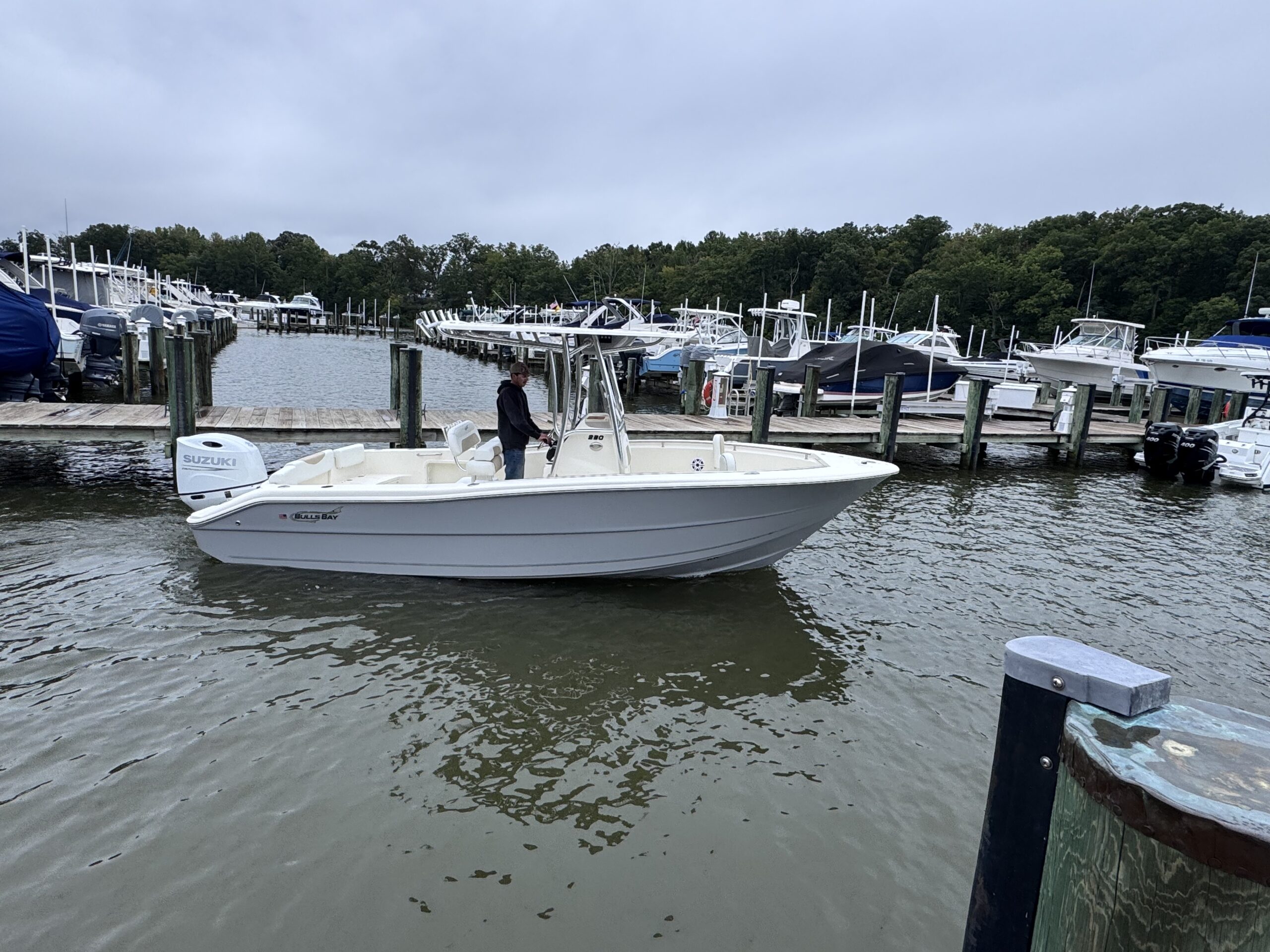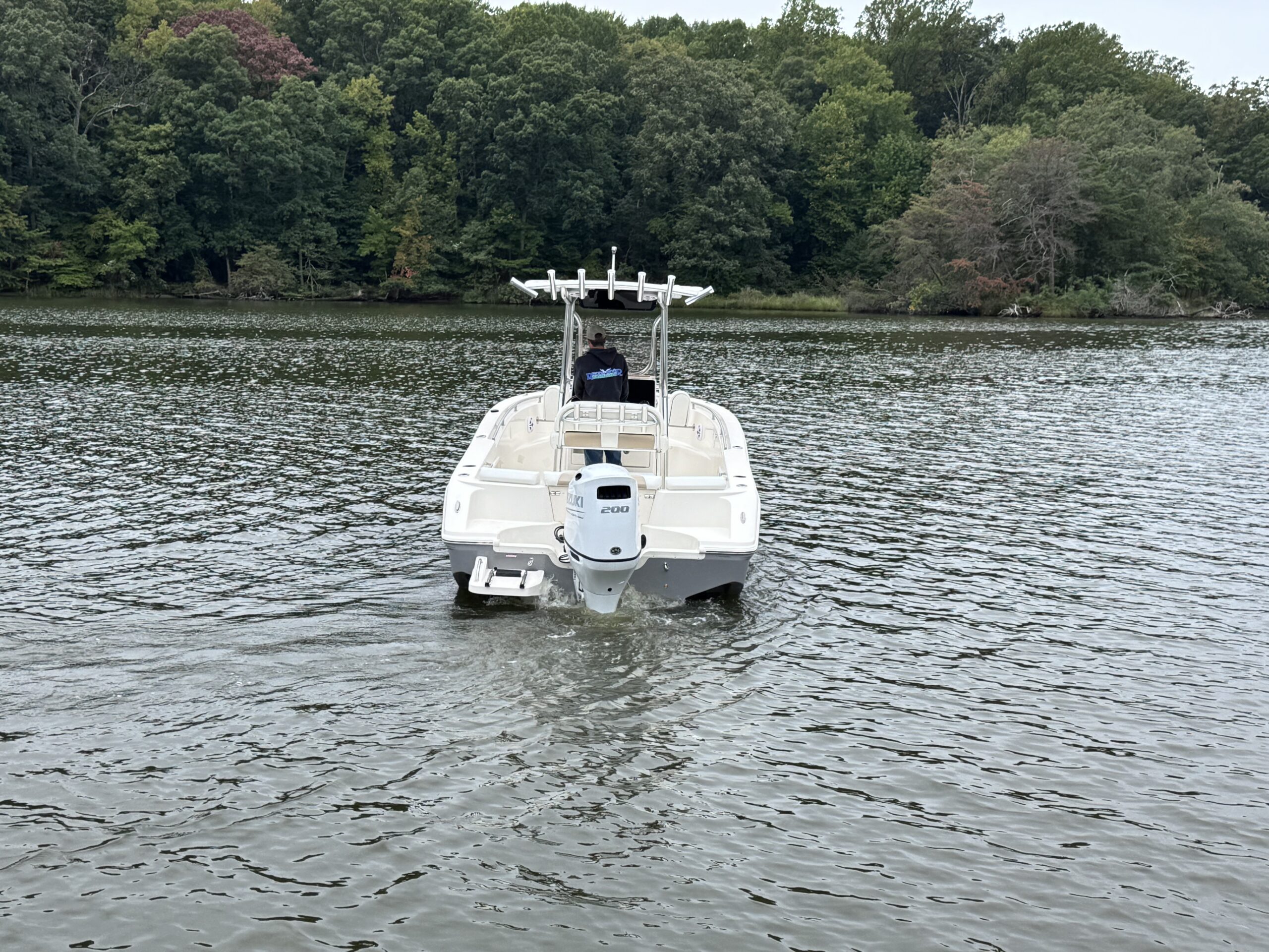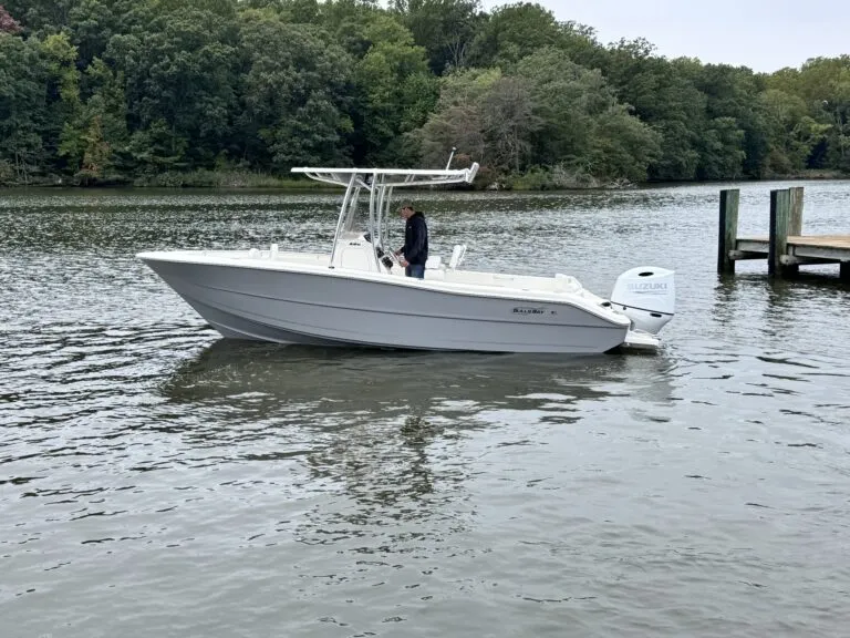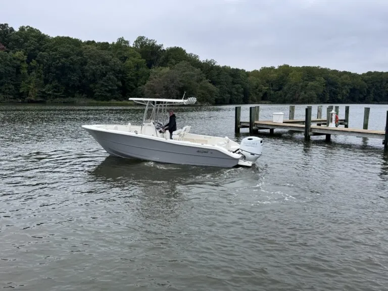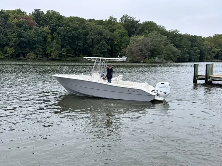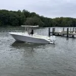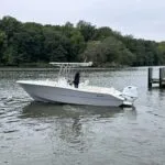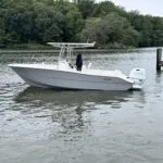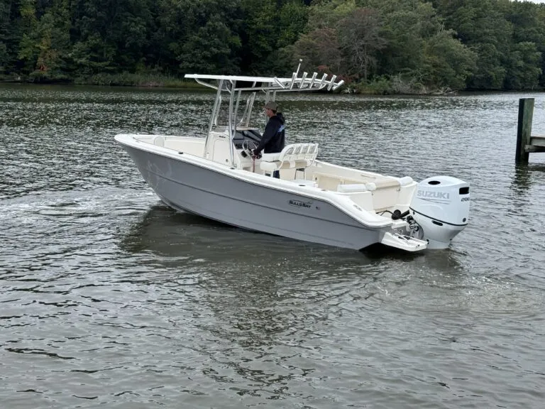 Powered by a white Suzuki 200APXW, this versatile 23-footer delivers efficient performance, whether you’re exploring inland waters or making a quick run across the Chesapeake. As a result, it’s an ideal fit for anglers and weekend boaters alike.