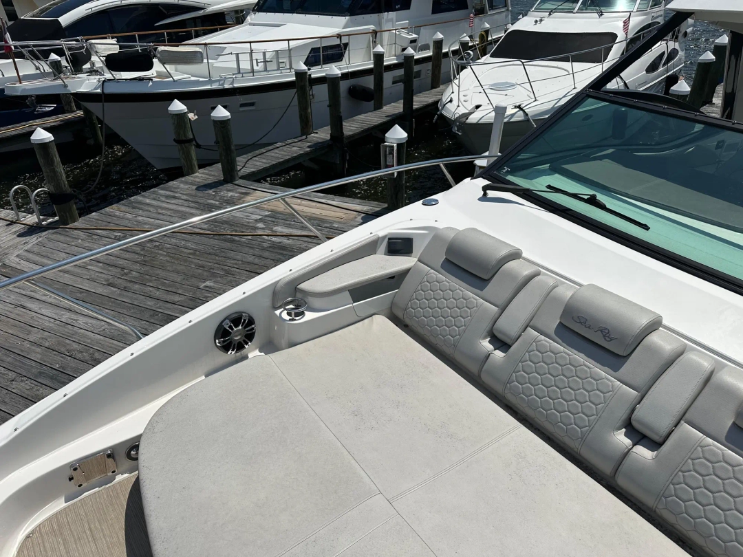 Experience the perfect blend of luxury, versatility, and performance aboard this exceptionally maintained 2021 Sea Ray 320 Sundancer Coupe. With only 240 hours on twin Mercury MerCruiser 6.2L 350HP engines (700HP total), this Sundancer delivers an unmatched combination of power and elegance on the water.