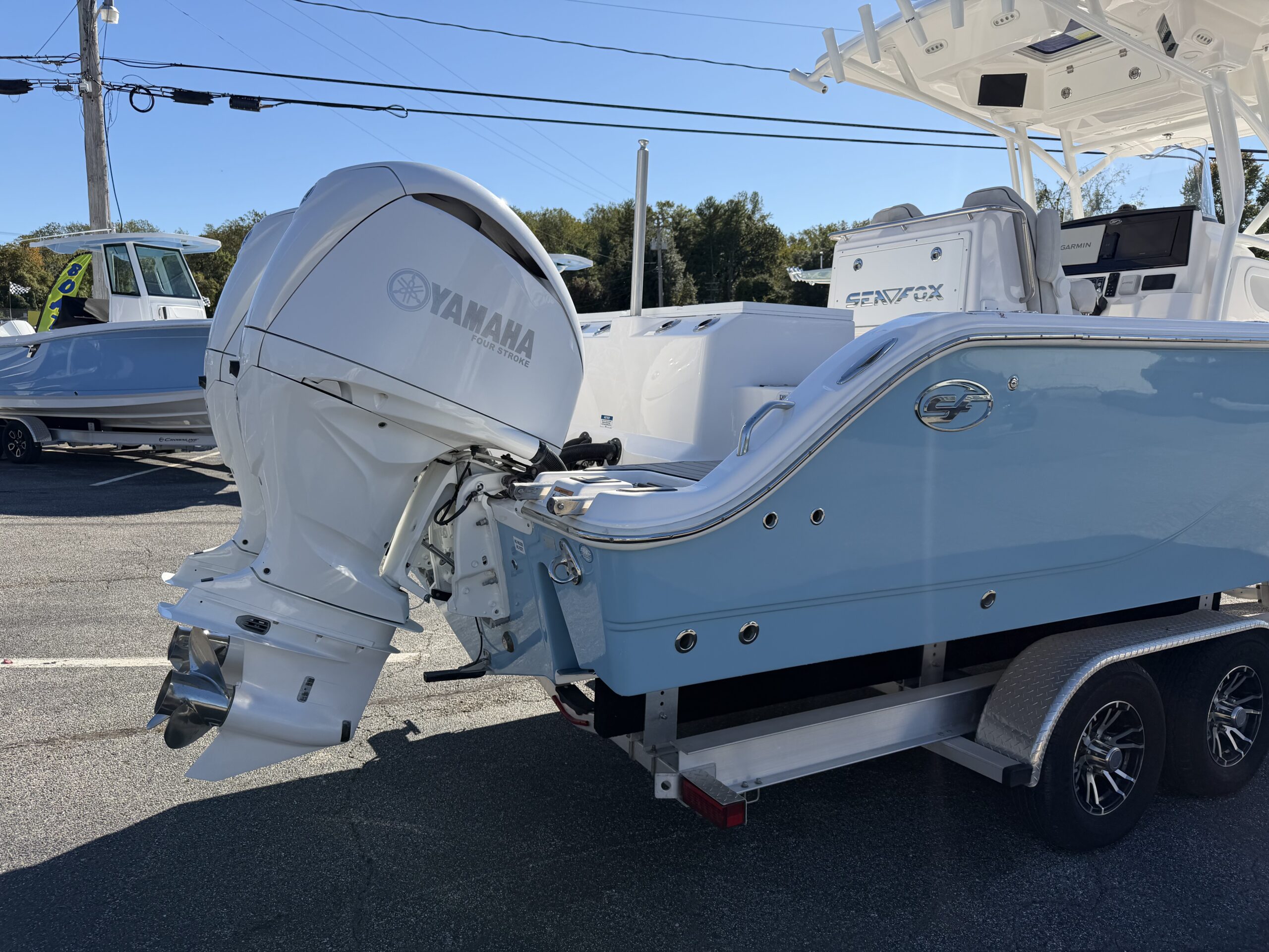 Experience premium offshore performance and luxury with this Sea Fox 288 Commander, powered by twin Yamaha F300XCA engines with stunning white painted cowls. This 28-foot center console is designed for serious anglers and family cruisers alike—offering performance, comfort, and versatility in one impressive package.