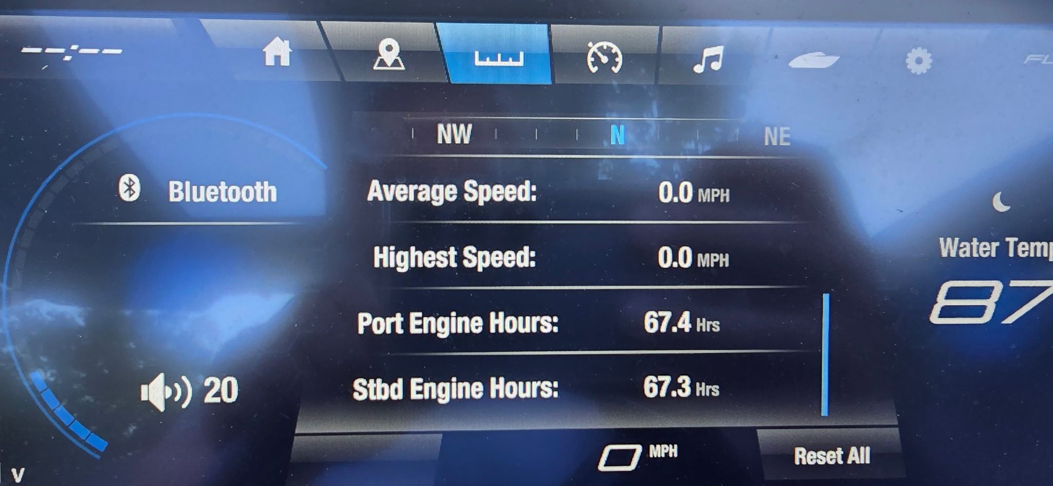 Powered by twin Yamaha 1.8L SVHO 250 HP engines (totaling 500 HP) with only 67 hours, this vessel delivers both speed and reliability. She comfortably cruises in the 40s and reaches a top speed of 53 MPH—perfect for water sports, island hopping, or a quick run back to the dock.