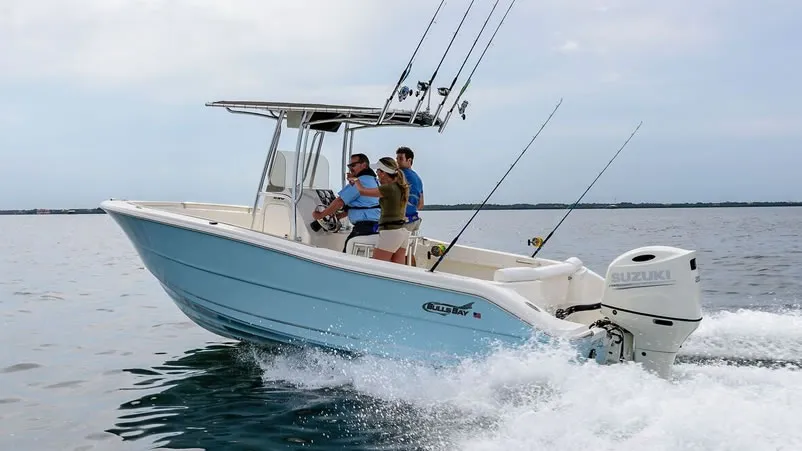 A true offshore no frills fishing machine, the 230 CC features a centerline of twenty two feet eight inches and an eight foot six inch beam. This Bulls Bay Center Console is built for offshore fishing fun, and the one hundred three gallon fuel capacity makes every fishing spot accessible in comfort.